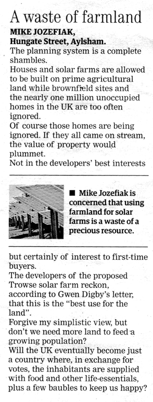 against the solar 'farm'. To view the petition click this link. Colin Stammers
