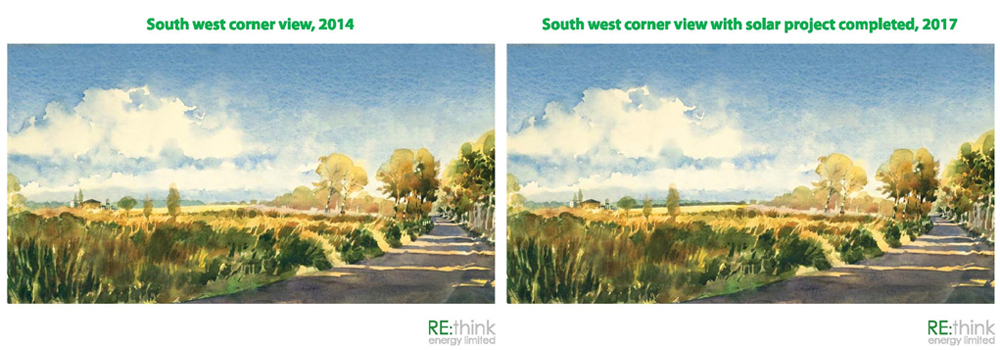 wildlife and visual beauty." The following shows the application for the massive 'solar farm' by Rethink Energy, Ward Hill and farmers Wright. So far we can find no evidence that Rethink have ever done anything like this before. They seem to have made up a set of guidelines for themselves - then immediately disregarded most of them. Re-think website says - Ideal sites fit the following parameters: • Low grade, unproductive land that could be grazed by sheep (It is productive land) • Away from residential areas and / or through hedge and tree planting could be screened from public view (It is right next to the village and screening would block out the landscape) • Close to an electricity substation (Is 10 miles close?) As can be seen below, the huge site would be right next to the village and the wonderful views we enjoy would be stolen from us and replaced by an industrial landscape.