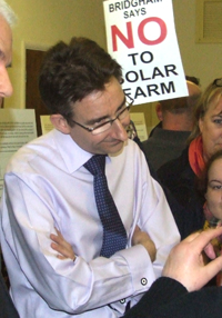 the plan acceptable." But now Jemima Dean recommends approval. Why? Apart from a small reduction in number of panels and a lot more hedgerow planting it was the same plan in the same place. The vast majority of local residents and parish councils are against this. Liz Truss,